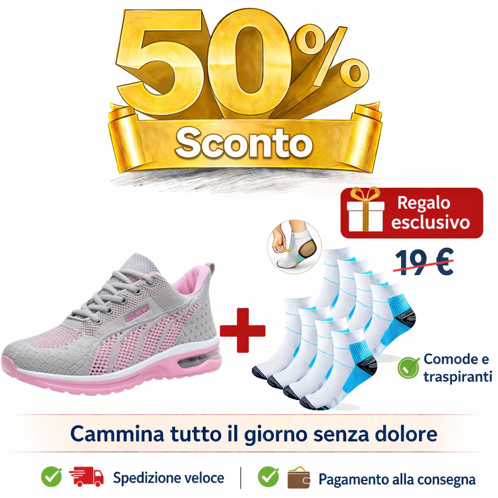 ✅ Gli ordini effettuati oggi riceveranno in omaggio un paio di calzini ortopedici premium (per alleviare il dolore ai piedi) del valore di 19 €.